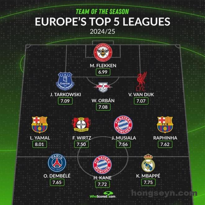 就在刚刚,数据网站Whoscored统计了2024~25赛季的五大联赛评分最佳阵容。在将球员的场均评分以及综合表现进行评估后,门将位置给到了布伦特福德球星弗莱肯。他的综合分数为6.99。客观来说,上赛季五大联赛门将当中并没有太过出彩的存在。反而是弗莱肯在这其中拿出了上佳表现,他入选这套阵容没有问题。