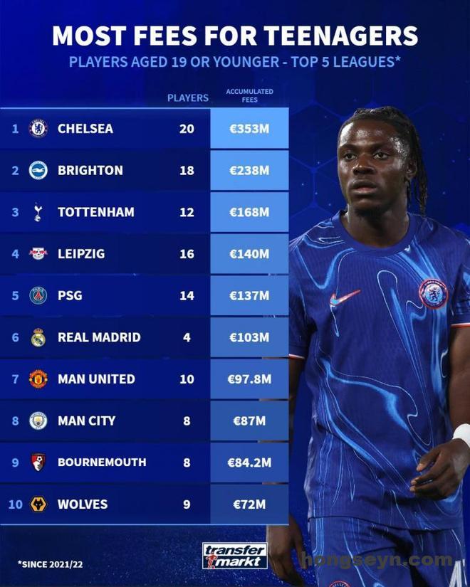 直播吧7月20日讯 德国转会市场统计了21-22赛季以来五大联赛俱乐部引进U19(包含19岁)球员的总费用,并 […]