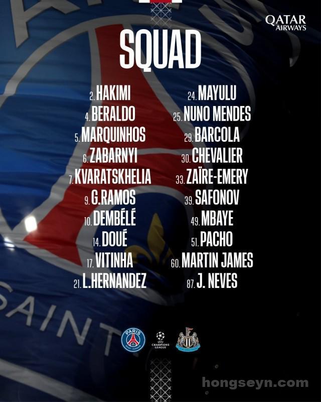 【名单】巴黎迎纽卡:登贝莱领衔