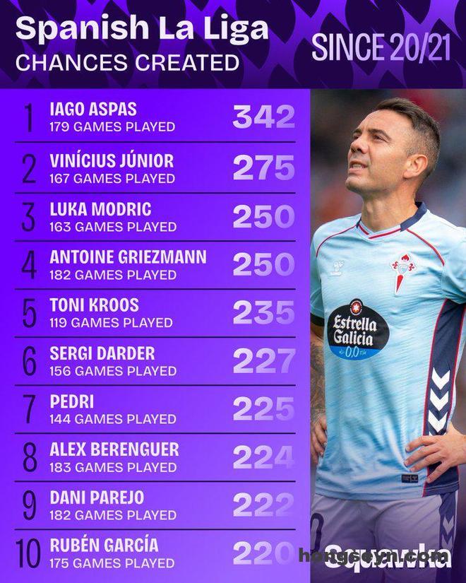 雷速体育10月12日讯 根据数据统计机构公布的西甲20/21赛季以来创造机会榜单,阿斯帕斯以342次高居榜首, […]