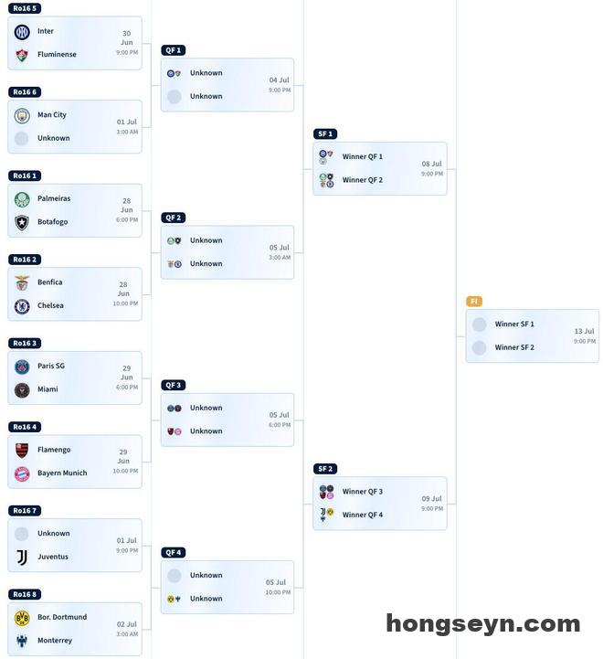 2025年世俱杯淘汰赛已经确定14支球队的落位,只差H组两场比赛结束,即产生淘汰赛对阵!