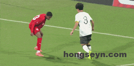 第41分钟,阿尔哈贾后场停球失误。邝兆镭抢断后被阿尔哈贾放倒,裁判对其出示直红,巴林队剩余时间不得不少打1人。