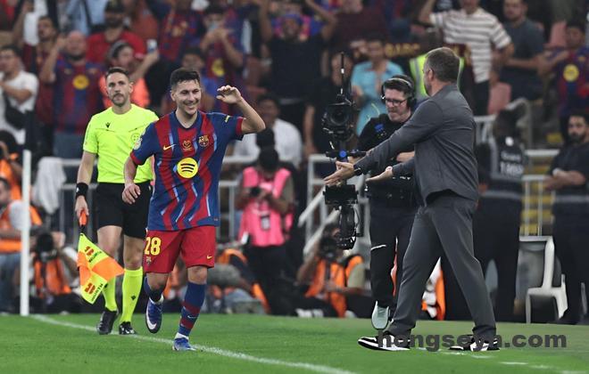 西甲豪门巴塞罗那上赛季勇夺国内赛事三冠王,本赛季的表现依然稳定,一波连胜之后以4分优势稳居联赛榜首。这个比赛日,巴萨也迎来了西班牙超级杯半决赛,对手则是状态不佳的毕尔巴鄂竞技,巴斯克雄狮近7场比赛只获得2胜2平3负。此役亚马尔替补,拉菲尼亚2射1传,费尔明传射建功,巴萨5-0横扫对手,取得各项赛事9连胜,静候马德里德比的胜者。