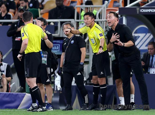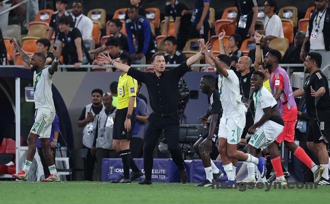 而面对吉达国民教练组依依不饶的质疑抗议,马宁霸气伸出一指,示意他们不要再纠缠,吉达联合的染红球员,只能悻悻地迅速离场。随后转播镜头拍到马宁和吉达国民助教之间还在进行交流。