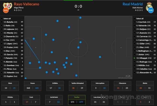 应该说两支球队在场面上是势均力敌的,皇马没有展现出任何的优势。这也跟姆巴佩的接球习惯有关系。他在本场比赛中,一共才在巴列卡诺禁区内触球3次,跟上一场与利物浦比赛时是一样的。