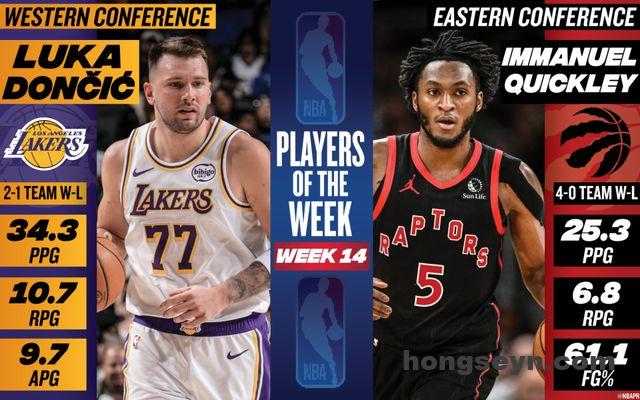 北京时间1月27日,NBA官方公布了第14周的周最佳球员,湖人的东契奇当选西部周最佳,猛龙的奎克利当选东部周最佳。这是东契奇生涯第16次当选周最佳,也是本赛季的第2次。这是奎克利生涯首次获得这一奖项。