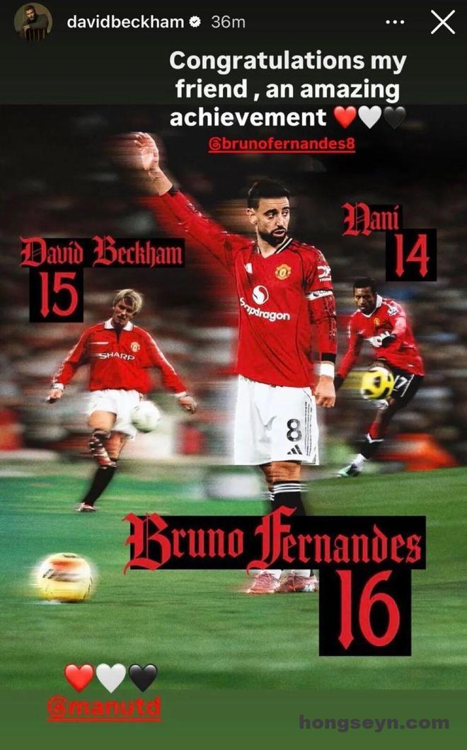 贝克汉姆恭喜B费打破自己的助攻记录:恭喜你我的朋友,这是一项很棒的成就