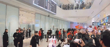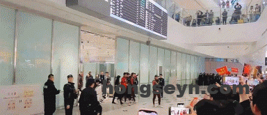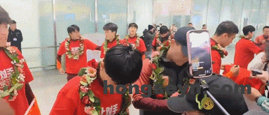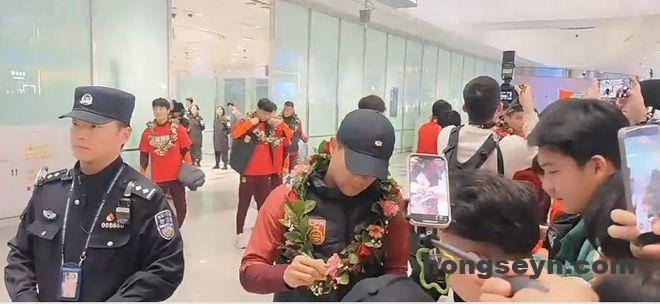 中国足协秘书长袁永清前往机场迎接U23国足,近1200名龙之队球迷前往机场接机,他们高喊“青春无畏,国足扬威““马到成功,越来越好”。