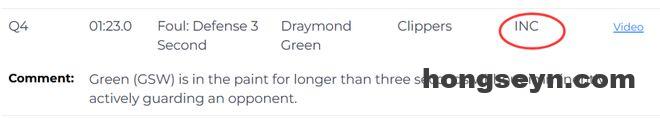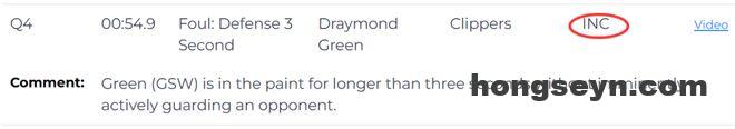 第三次漏判发生在距离比赛结束还有54.9秒,同样是勇士队的格林在没有积极防守对方球员的情况下,在己方禁区停留时间超过三秒,这也是一次漏吹的防守三秒违例,勇士获利,快船吃亏。