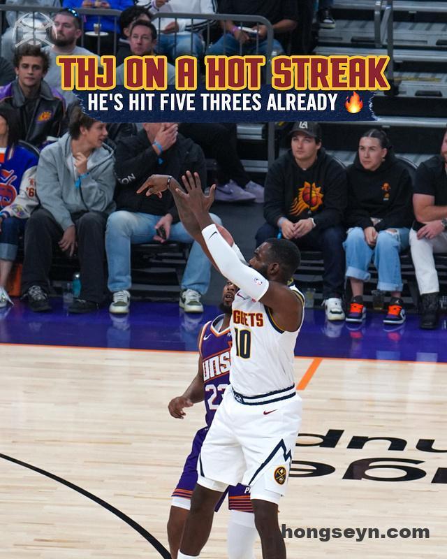次节比赛,掘金连续两节单节轰下30+得分,太阳则完成两队本场首次单节35+得分。约基奇延续自己的百分百准星,他单节再得到5分1篮板1助攻,小哈达威爆发接连外线三分命中,引领掘金单节33-35被追回2分,上半场结束掘金63-60领先太阳3分。前两节比赛,掘金三分命中数10-9领先,约基奇5中5得到18+5+4、小哈达威5记三分17分与穆雷13分,狄龙19分与吉莱斯皮4记三分12分,布克9分4助攻。